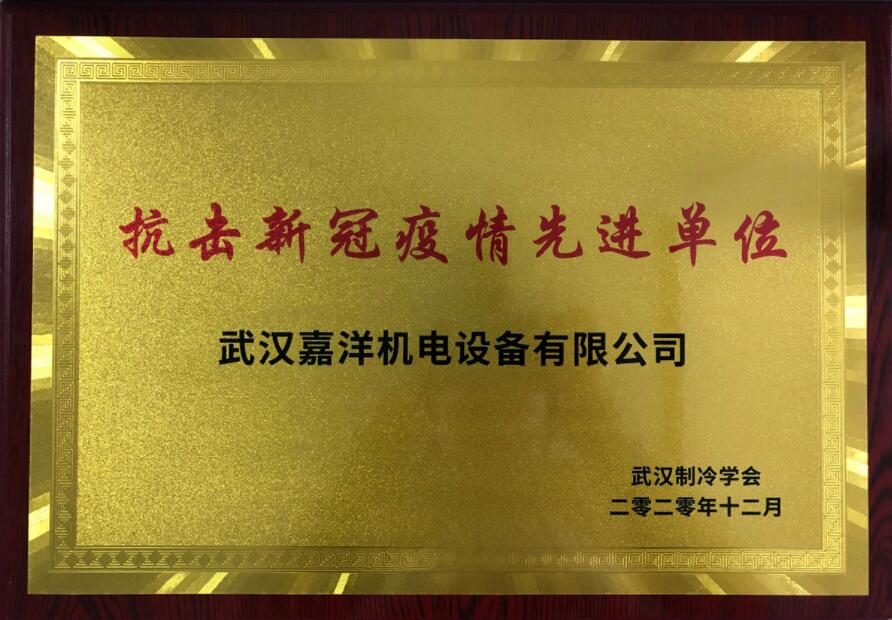 嘉洋機(jī)電榮獲武漢制冷協(xié)會(huì)頒發(fā)“抗擊新冠疫情先進(jìn)單位”證書
